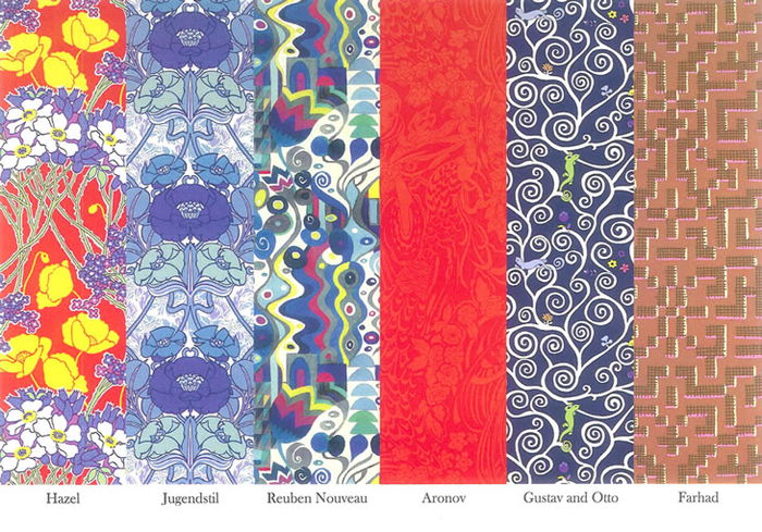 リバティ・アーカイブに収められている一つは1890年代のアール・ヌーヴォー様式の柄と、シルバー・スタジオが1890年代後半にデザインした織物の柄をもとにして生まれた柄です。