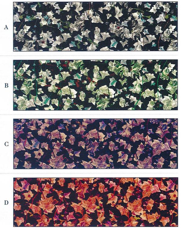 世界の現代紙幣を使って紙の彫刻を手掛けるジャスティン・スミスが植物を題材に創作した柄で、彼女のスタイルが脈打っています。ジャスティンがスタジオに通う途中で目にしていた壁が徐々にツタに覆われていく光景をヒントに生まれたデザインです。