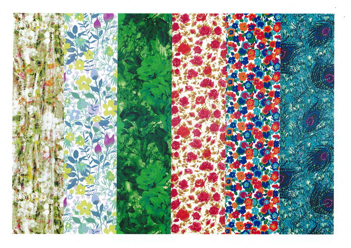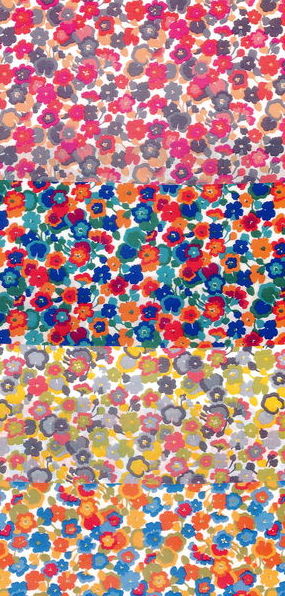 リバティ・アート・ファブリックスにとって新たな感覚で色づけされた柄で、店内のコンテンポラリー・ファッション・コレクションの売場を表しています。