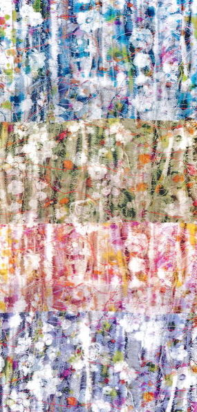 デニムとカジュアルウェア売場を表す「ホリー」は、窮極のカラー・デニムやディストレス・デニムをヒントに制作されました。何本ものジーンズを細かく引き裂き、マルチ・カラーのインクを垂らし撮影、それをコンピューター処理しました。