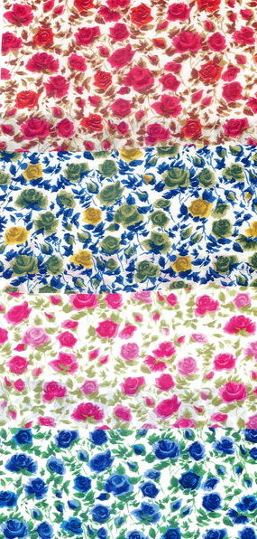 水槽の中に垂らした色インクが拡散していく中で生まれる不思議で美しい形を一定間隔で写真に収めたものをもとに制作した現代感覚のスイムウェアのプリントです。でき上がった形を地模様のようにアレンジしたものに、アーカイブのバラ柄を上に重ね合わせ、水着売場を表現しました。