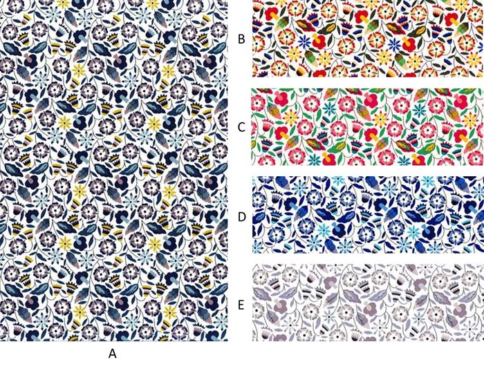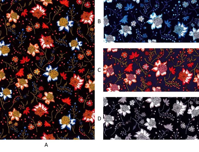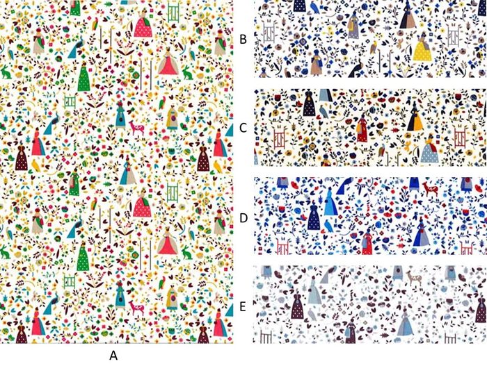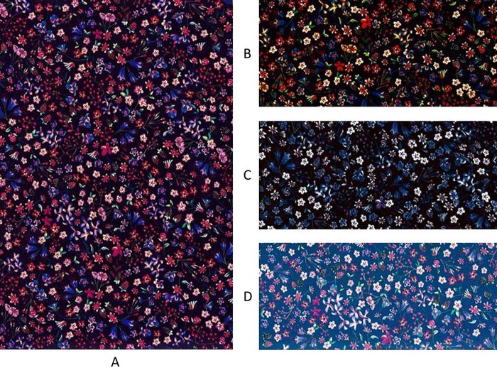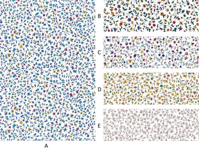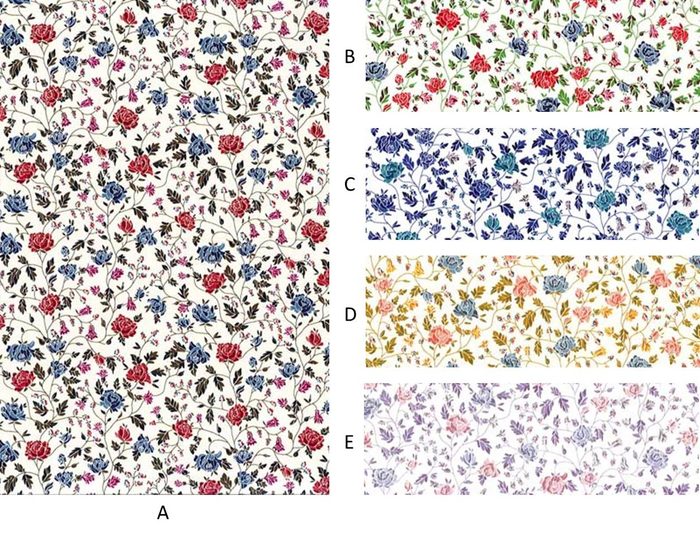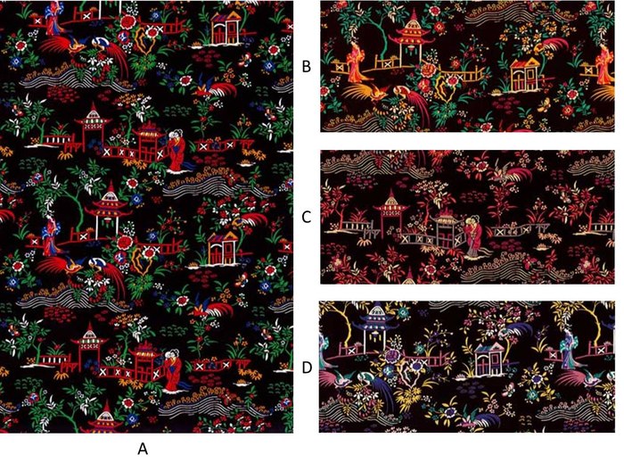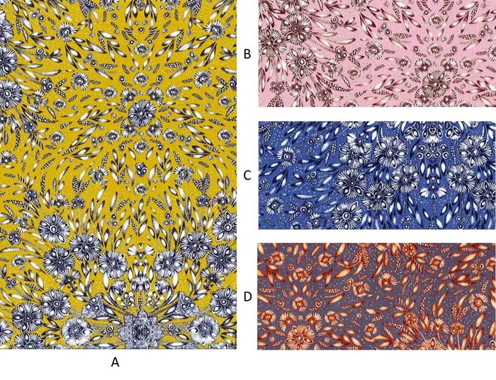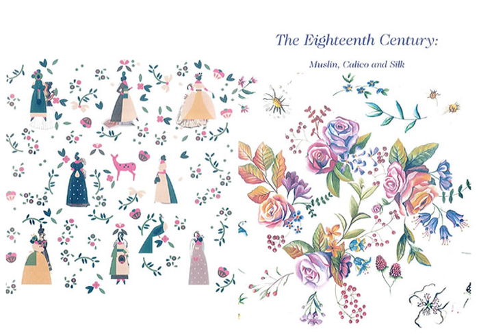 プリントのヒントになった柄は、モスリン、キャラコ、シルクの全てで展開されています。