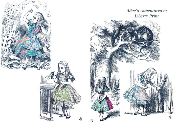 10年以上にもわたりルイス・キャロルの『不思議の国のアリス』についての研究や講義を行ってきた、講師キエラ・ヴァクラヴィックが選んだ柄です。キャロルは舞台『不思議の国のアリス』のアリス役の少女には『クリーム色のリバティ柄のドレス』を着ることを望みました。その少女の名がアイザ・ボウマンです。