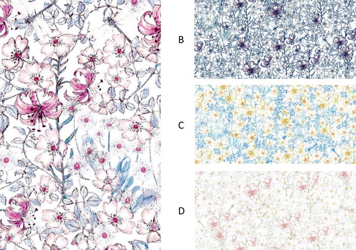 今回リバティとのコラボレーションを委託されたメンバーたちは、不思議の国でアリスが身にまといそうなデザインを考えたり、リバティのアーカイブを参考にしたりしました。
