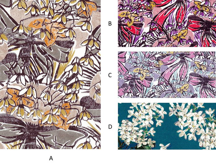 1949年のマートン捺染工場のスカーフ用の版をもとにした柄です。