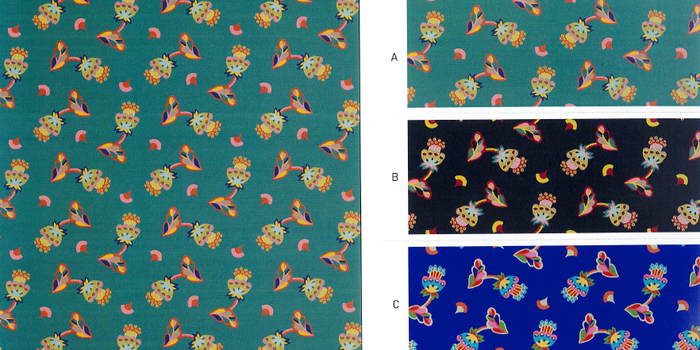 シンプルにレイアウトされたエキゾチックな花や蕾が、不思議な雰囲気を醸し出しているデザインです。