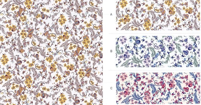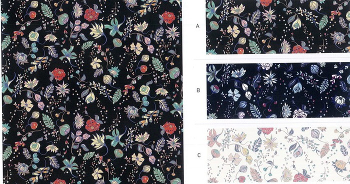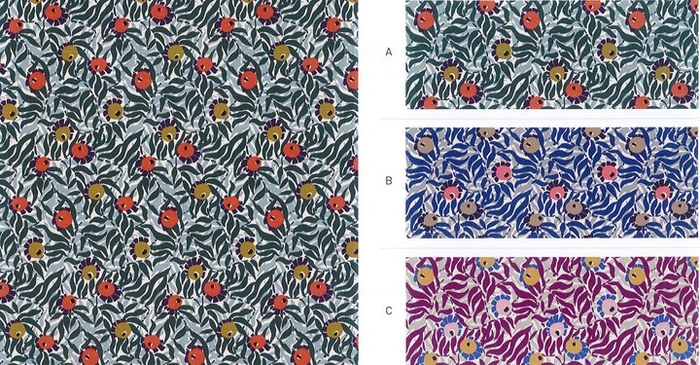 香り高く咲き誇る花々や勢いよく芽吹く緑の間に、よく熟した艶やかなベリーが配置され、贅沢な冬のご馳走を演出します。見てもわからないような果物や植物が、シュールで変わった花柄に謎めいた魅惑をもたらします。