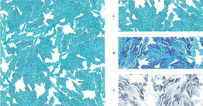 マティスの大胆な切り絵にインスパイアされた柄です。陰と陽の美しいトーナル調のタペストリーは、広大な海底を探索するような鮮明な印象を与えます。