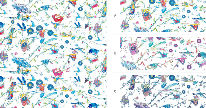 ラジオ番組「デザート・アイランド・ディスクス」を聞きながら、孤立した場所にどうやって好きなものが届けられるのかを想像した事から生み出されたデザインです。プリントに登場する贅沢なアイテムは、どれもが「デザート・アイランド・ディスクス」のラジオ番組で取り上げられたものです。