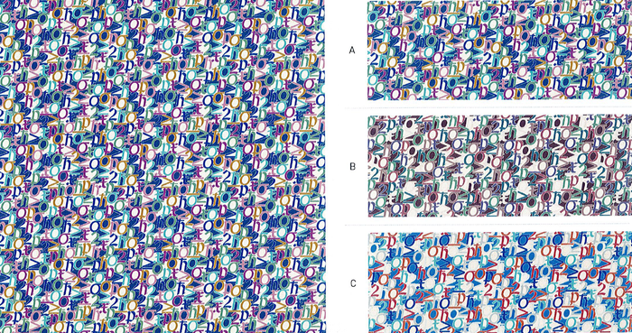 量子力学の不確定性原理の方程式に使われている文字や数字を取り入れた柄です。この方程式は、ある粒子の位置と運動量を同時に知ることはできない、つまり未来が確定したものかどうかを知ることは永遠にできないとしています。仮に無人島に漂流しても運命は決められたものではないので、いつでも脱出することが出来るという事です!自分の運命は自分の手中にあるのです!