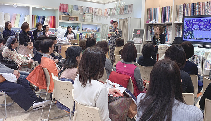 2019年3月29日(金)、メルシーでは初の試みとなる、リバティ・ファブリックスのシニアデザイナー、フィオン・グリフィスさんをお呼びしたトークショーを本店及び西宮阪急店にて開催いたしました。