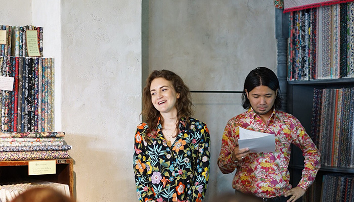 トークショーでは、今回デザインしていただいた特別な柄の紹介と、今後控えているコレクションについてお話していただきました。