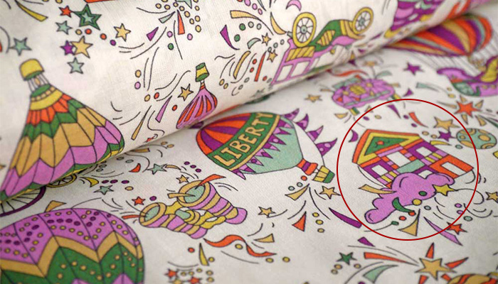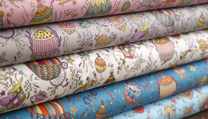 花のデザインに加えて、リバティプリントのアーカイブには19世紀初頭にまで遡る膨大なカンバセーショナルデザインがあります。フィオンさんは生地を通して物語を伝えるという考え方が好きで、常に新しい物語を生み出すことが自分の務めであるとし、ケーキ、ロケット、海の宝物や恐竜など、各テーマに応じて多様な物語を生み出してきました。