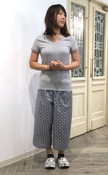 今回の秋冬柄は個性的な柄が多かったのですが、シーパンやパンツに気軽にあわせられるようにあえてシンプルなこちらの柄をチョイスしてみました。カジュアルな中にリバティの上品さ!オススメです!