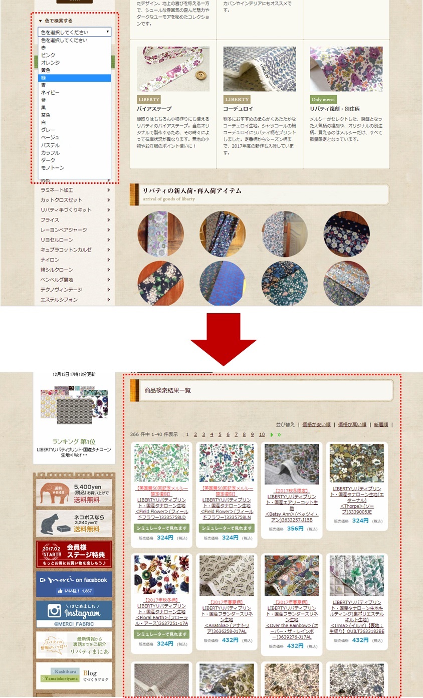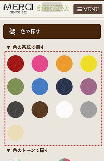 お客様から「色別で検索できるようにしてほしい」とご要望をいただきまして、色別検索を追加しました。
