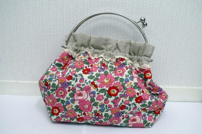 レトロな雰囲気で大人にも子供にも似合う、がま口手提げバッグ。