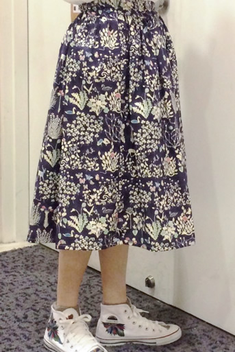 縫いやすく肌触りが気持ちいいとご好評のリバティ綿麻を使ったギャザースカート。丈はお好みでアレンジしてください。