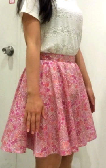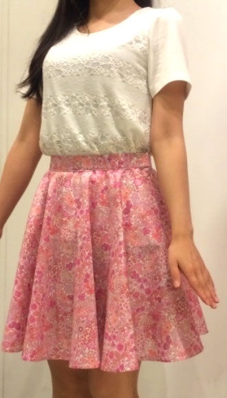 今年流行のサーキュラースカート。スカートを広げると円形になるデザインのスカートでドレープが美しくエレガンスにも可愛く見えるスカートです。
