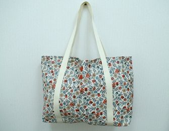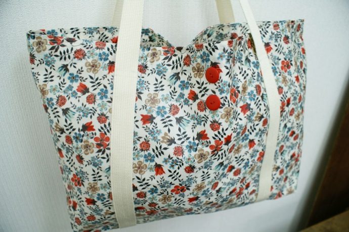 たっぷり入るトートバッグ!おけいこ事やお買い物などにぴったりです。口が大きく、すっぽり入って使いやすいサイズ。ボタンをあしらってかわいさをプラスしました。