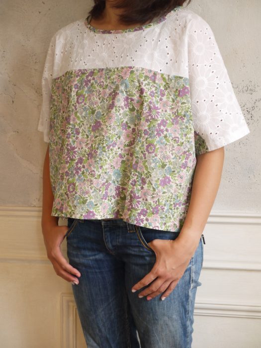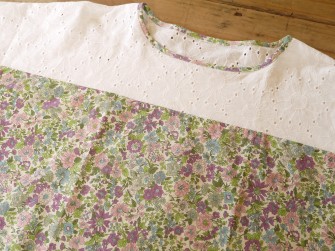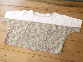 涼しげなレース素材とリバティを合わせたプルオーバーは、ゆったりとしていてとても涼しいです。是非、お好きなリバティの生地とあわせて作ってみて下さい。