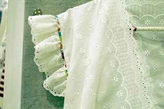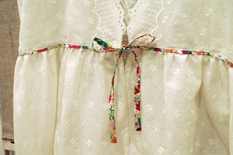ワンポイントにリバティプリントを使うことで主張しすぎず、さりげないかわいさを。